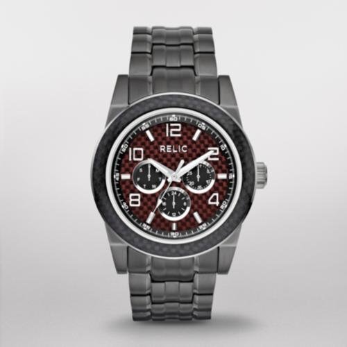 | Best RELIC Brady Gunmetal Stainless and Carbon Fiber Multifunction Watch - Best Prices at relic watches Compare Prices from Amazon.com and over 25$ Free shipping Find lowest price on relic watches. The RELIC Brady Gunmetal Stainless and Carbon Fiber Multifunction Watch Product Description of Youll love the classic silhouette fused with the modernized carbon fiber bezel and detailing of our Brady watch. In sleek gunmetal and red, its as stylish as it is functional. Case Size: 43mmCase Thickness: 13mmBand Width: 24mmWater Resistant: 5 ATMWarranty: 12-year limited Origin: Imported RELIC Brady Gunmetal Stainless and Carbon Fiber Multifunction Watch - Onsale at relic watchesThe RELIC Brady Gunmetal Stainless and Carbon Fiber Multifunction Watch - Lowest Prices on relic watches The best deal on relic watchesRELIC Brady Gunmetal Stainless and Carbon Fiber Multifunction Watch feature |